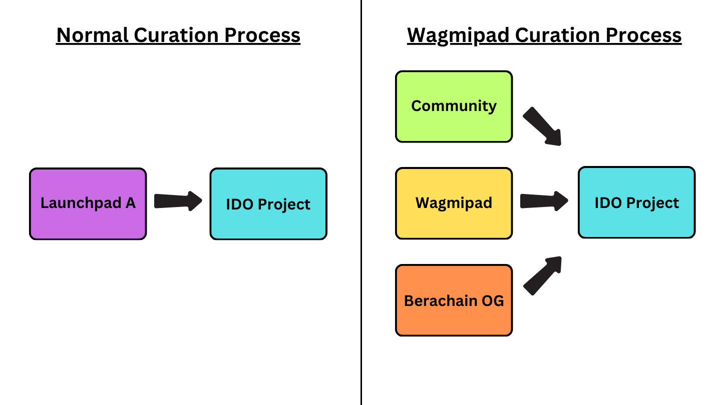**By incorporating the due diligence endeavors of the community, Wagmipad team, and Berachain OGs, we create three tiers of curation.** This thorough approach enhances the credibility assessment of listed projects, providing a more resilient evaluation process that isn't solely dependent on a single party.